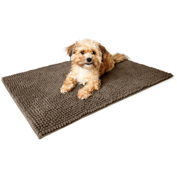 Die weiche, dicke Matte funktioniert hervorragend als Schmutzschleuse. Sie nimmt ein Vielfaches ihres Eigengewichts auf und ermöglicht das Abtrocknen des nassen Vierbeiners nach einem Spaziergang bei regnerischem Wetter oder nach einem gewollten oder ungewollten »Schlammbad«.