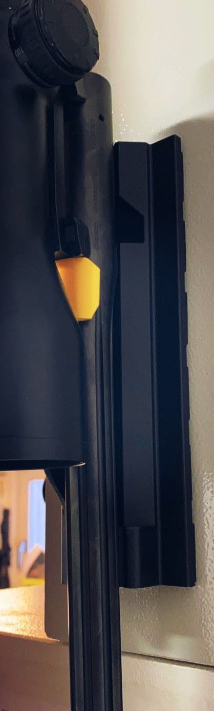 Die Neodym-Magnethalterung kann im Waffenschrank nach belieben angebracht werden. Das Moosgummi auf der Rückseite der Halterung schützt den Waffenschrank vor Kratzern.